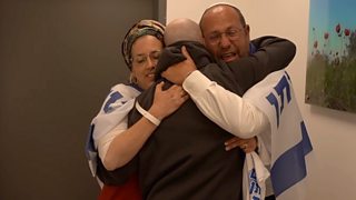 The same day, thousands watched a giant screen in a public plaza in Tel Aviv that has become known as Hostages Square. They shed tears of joy and relief as the hostages were released by Hamas in Gaza. Trump’s arrival was the other half of this split-screen moment – pictures were beamed out of the US president setting foot on Israeli territory.